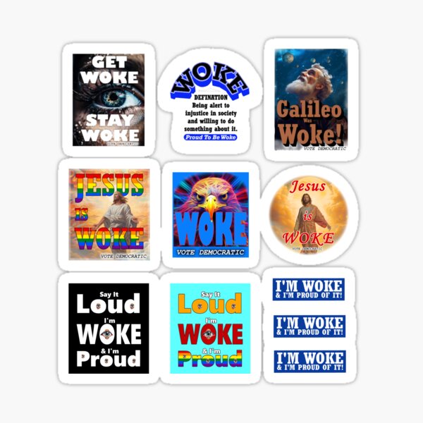 "Woke." Sticker by OriginalCheddar | Redbubble