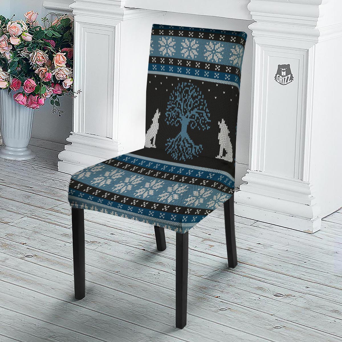 Howling Wolves And Tree Of Life Print Dining Chair Slipcover