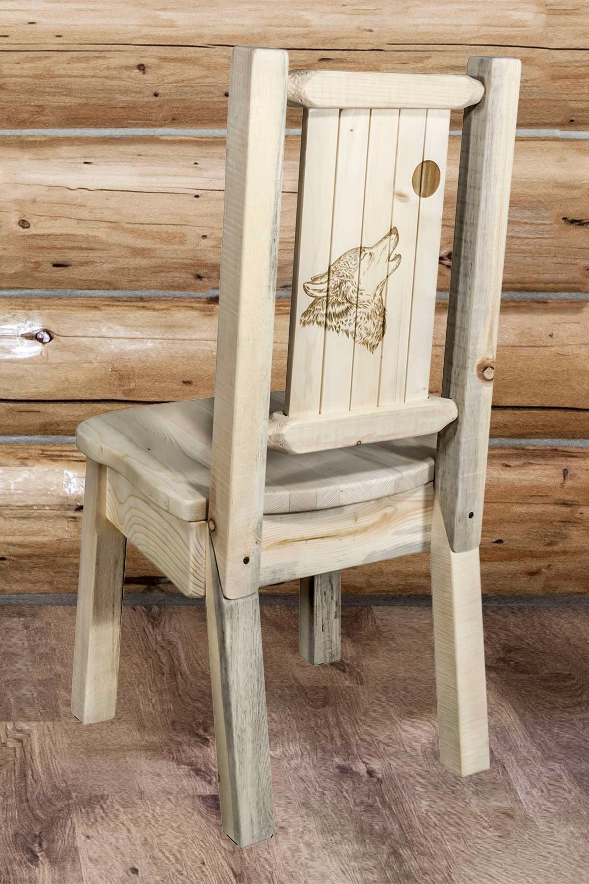 Montana Collection Side Chair w/ Laser Engraved Wolf Design, Ready to ...