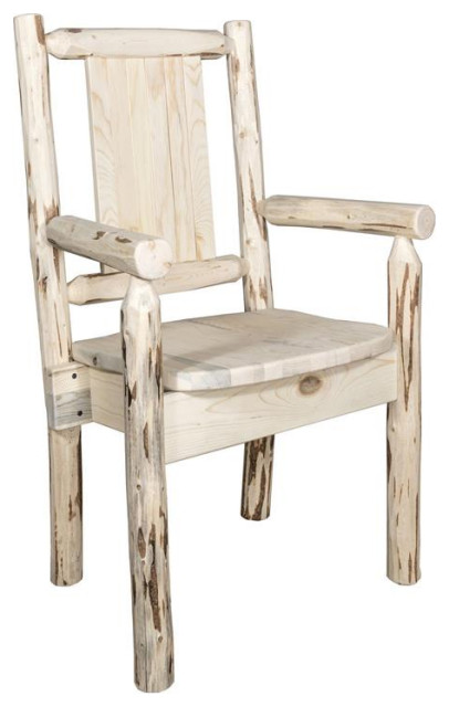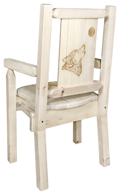 Montana Woodworks Wood Captain's Chair with Engraved Wolf Design in ...