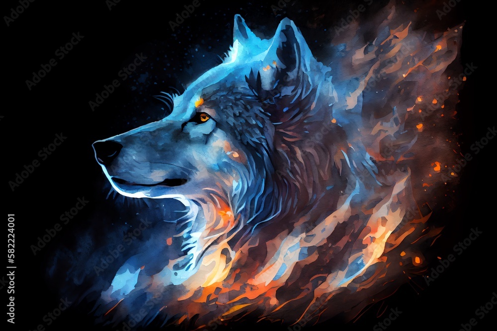 Watercolor Illustration of a Wolf In The Night, A Drawing Of A Wolf ...
