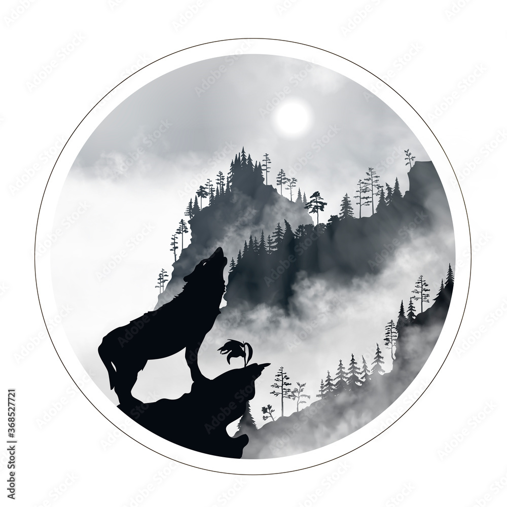 Wolf Night Vector Drawing Illustration This Stock Illustration ...