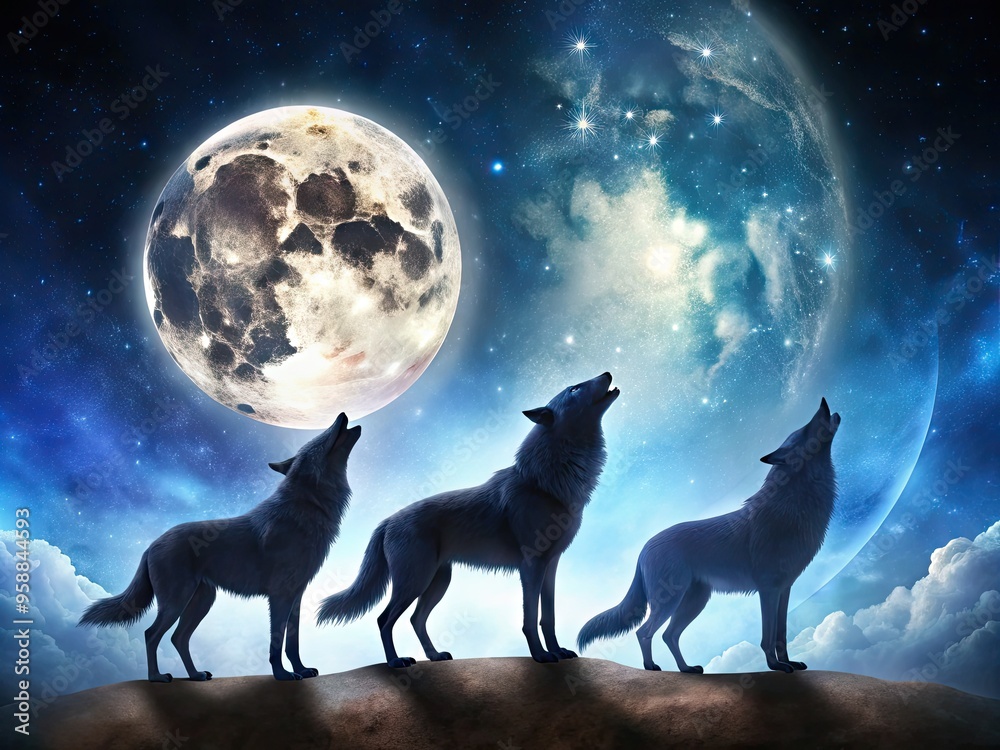 Night Wolf with Moon Digital Art, Instant Download,300dpi digital art ...