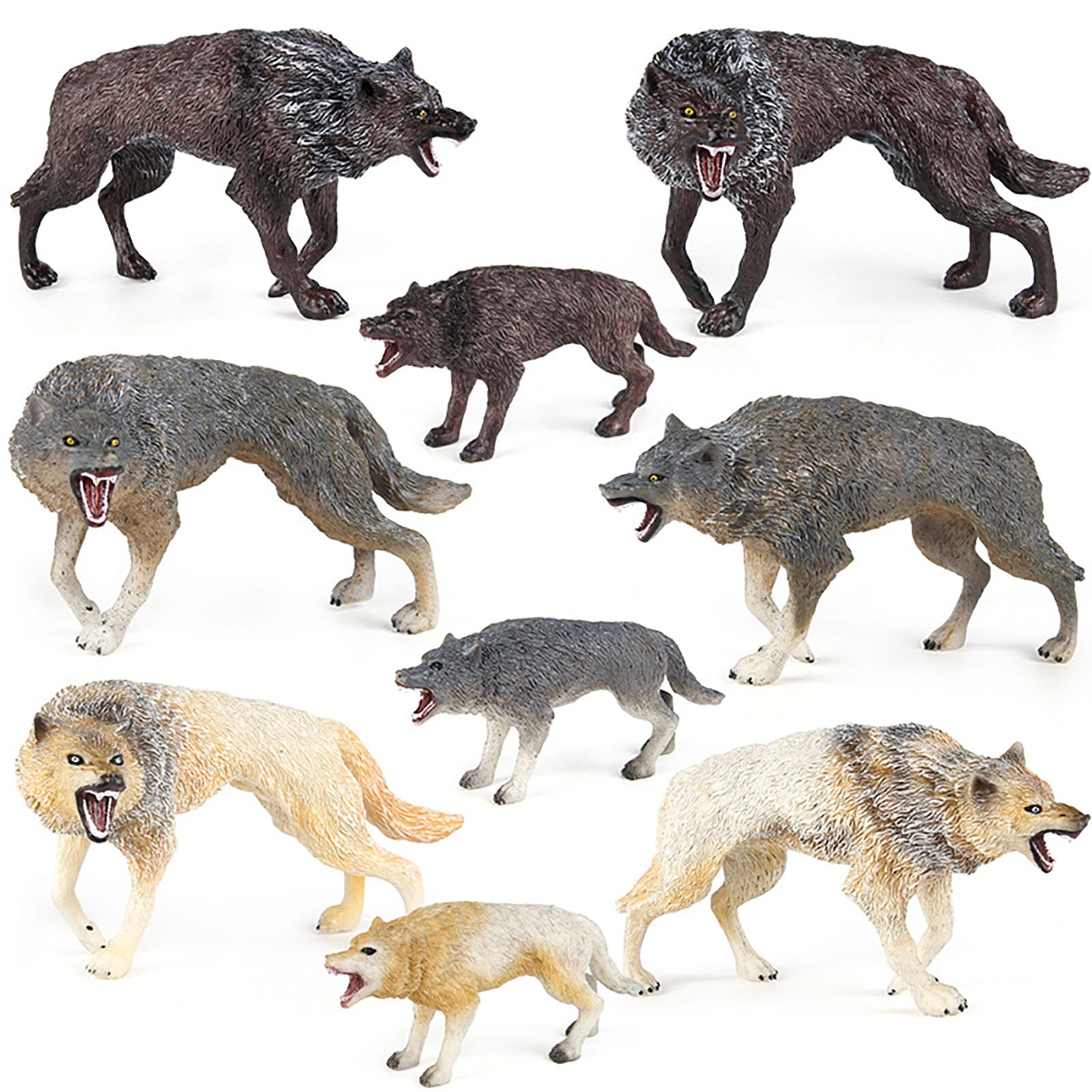 Skylety 8 Pieces Wolves Figurines Wolf Animal Toy Jungle Zoo Animal ...