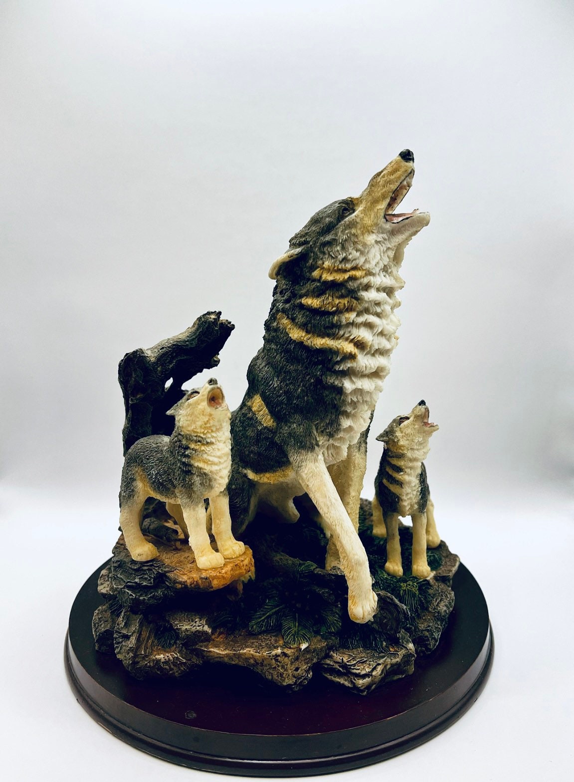 Vintage Resin Wolf Family Wolves Statue Figurine Decorative Large Wolf ...