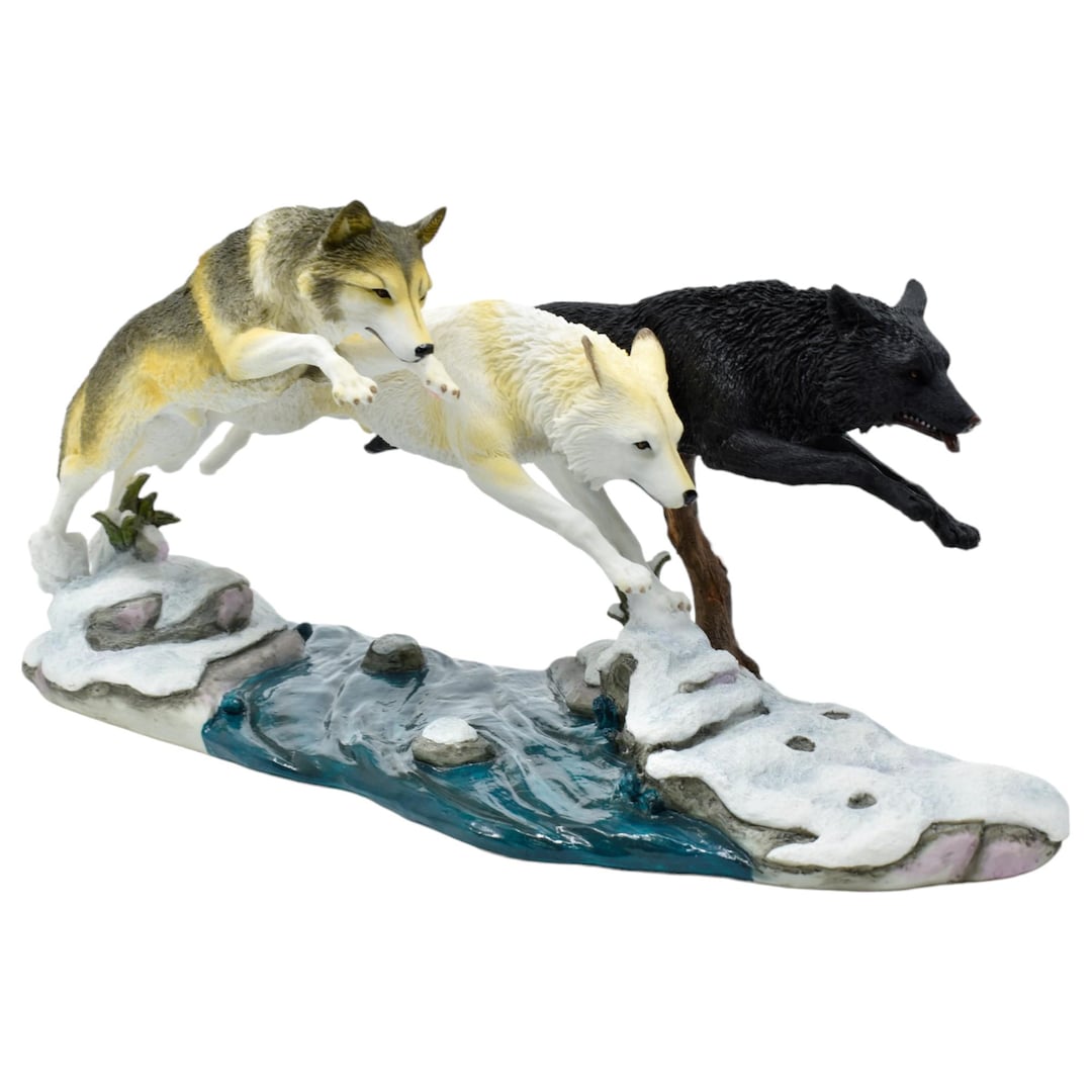 Handpainted Resin Three Wolves Sculpture: Vintage Collectible Figurine ...