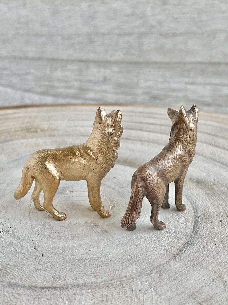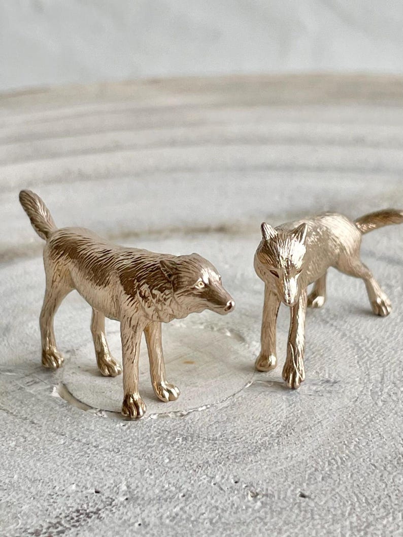 Mini Wolf Pair Figurine, Solid Cast Bronze, Realistic, Figurine ...