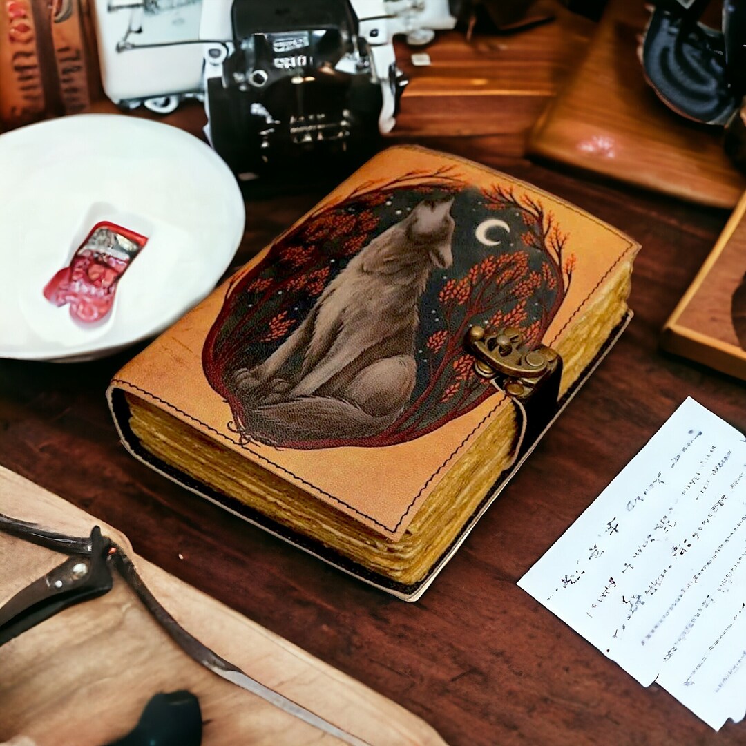 Wolf Vintage Leather Journal Grimoire Journal Wolf Notebook Wolf ...