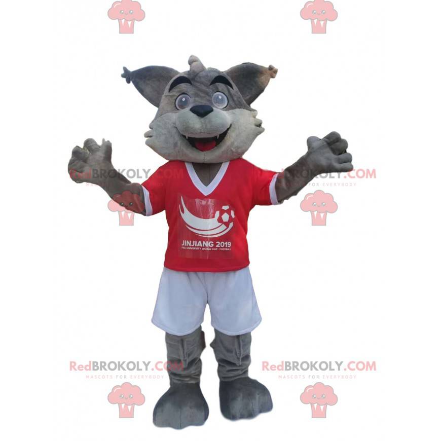 2 gray wolf mascots dressed in red and white - Sizes L (175-180CM)