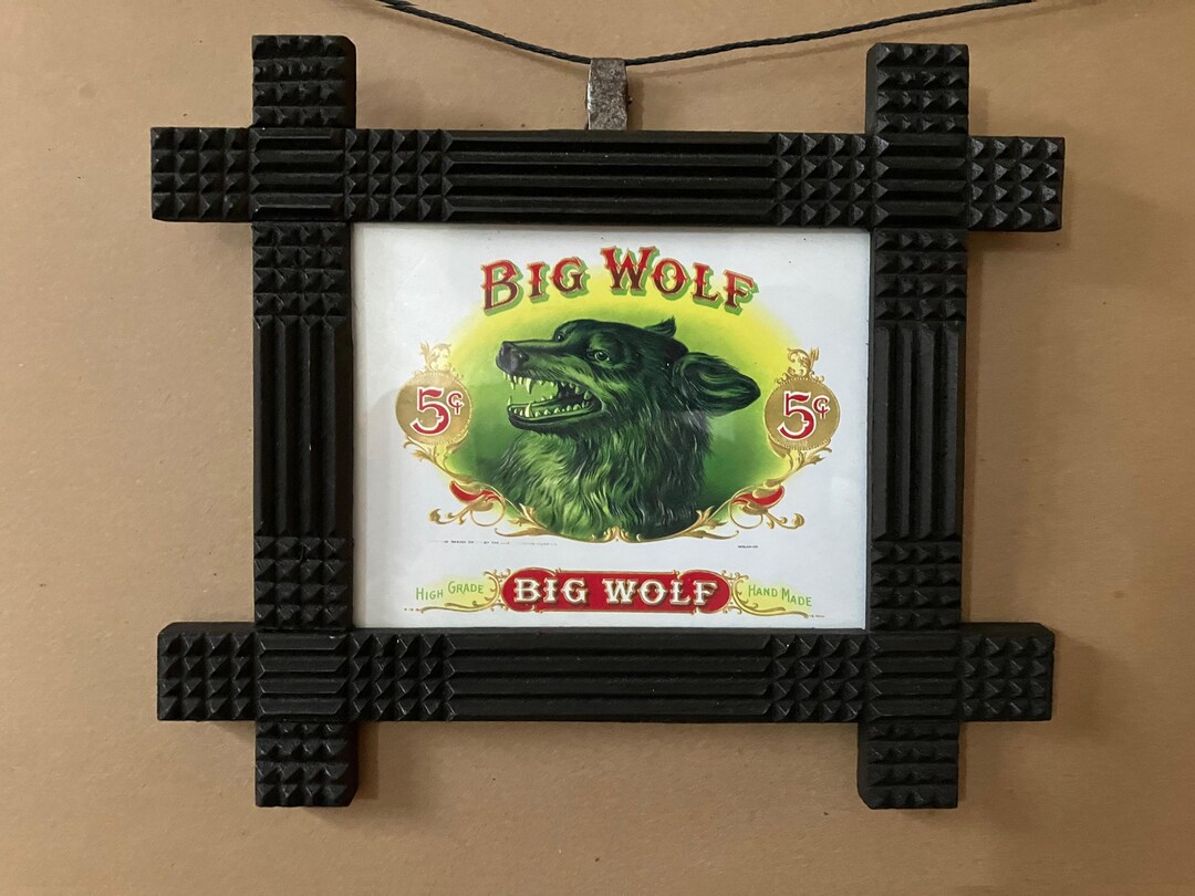 Artisan Created Tramp Art Style Frame With Antique Big Wolf Logo Label ...