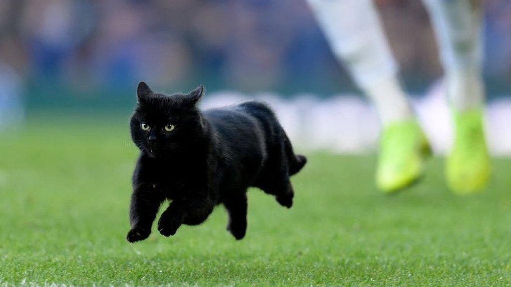 Black cat invades pitch during Everton Wolves at Goodison Park - listen ...