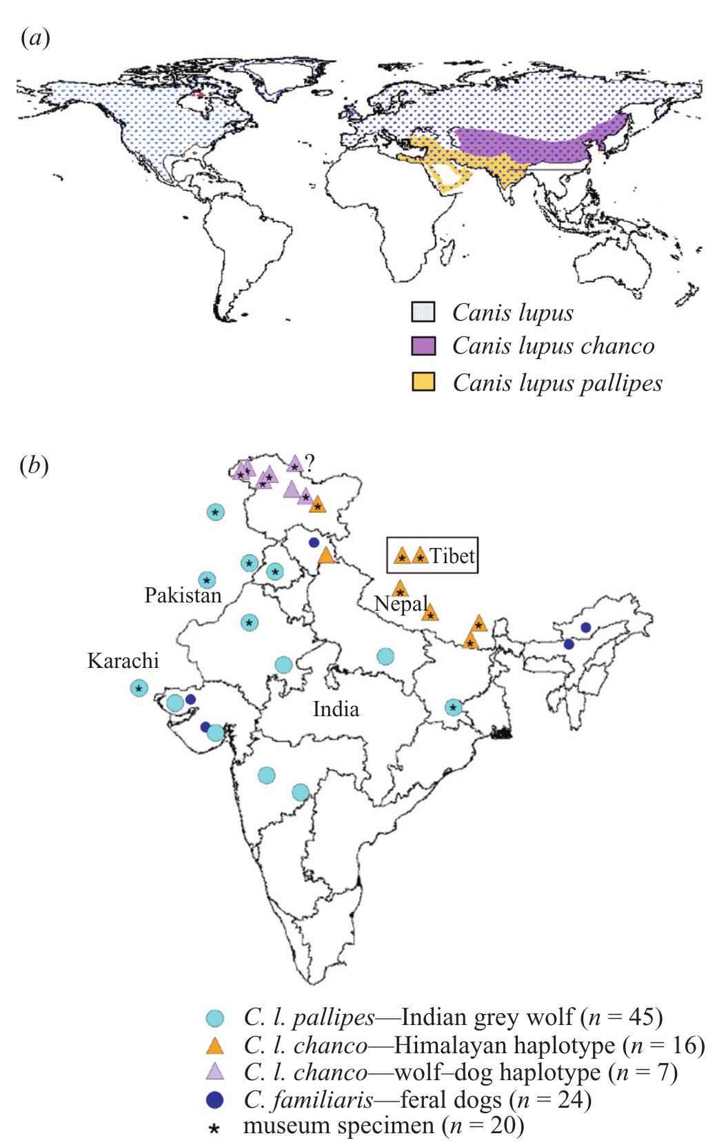 (a) map of wolf distribution in the northern hemisphere