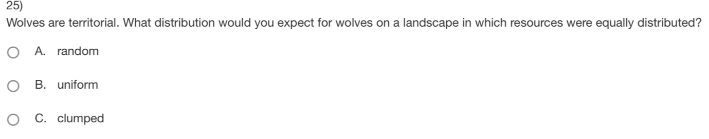 Solved: Wolves are territorial. What distribution would you expect for ...
