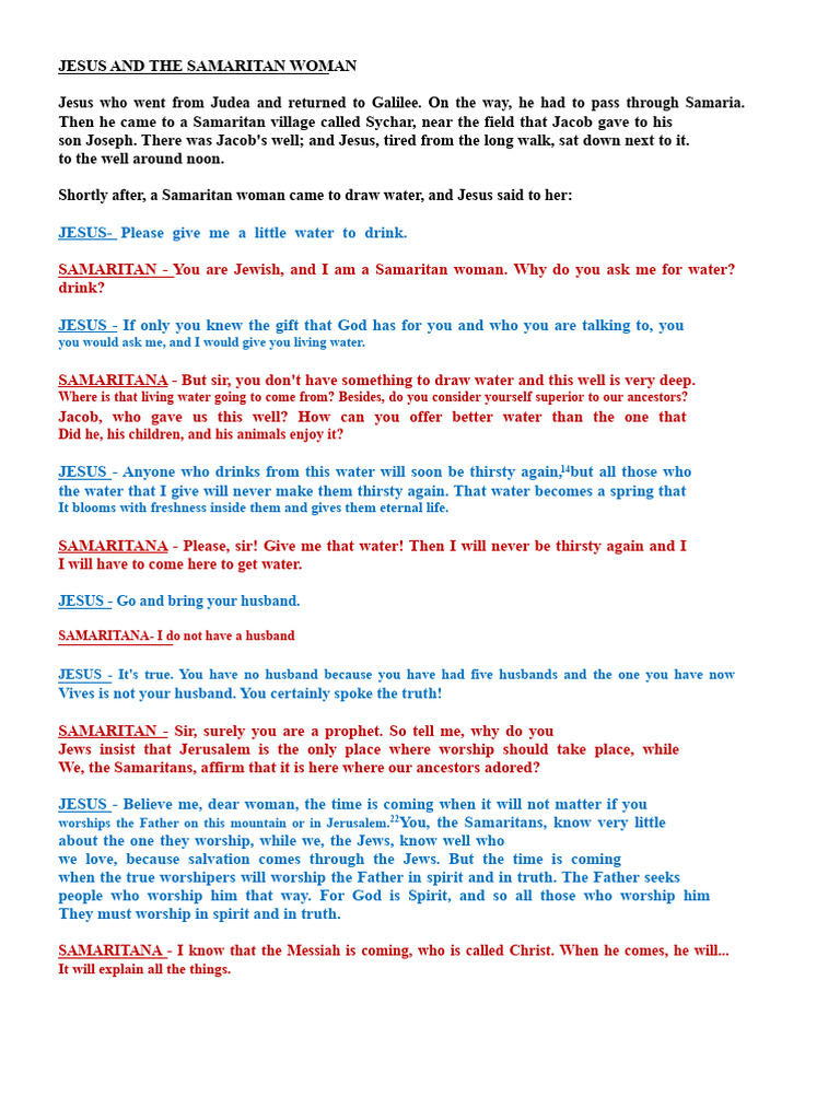 Jesus and the Samaritan Woman Script | PDF | Jesus | Samaritans