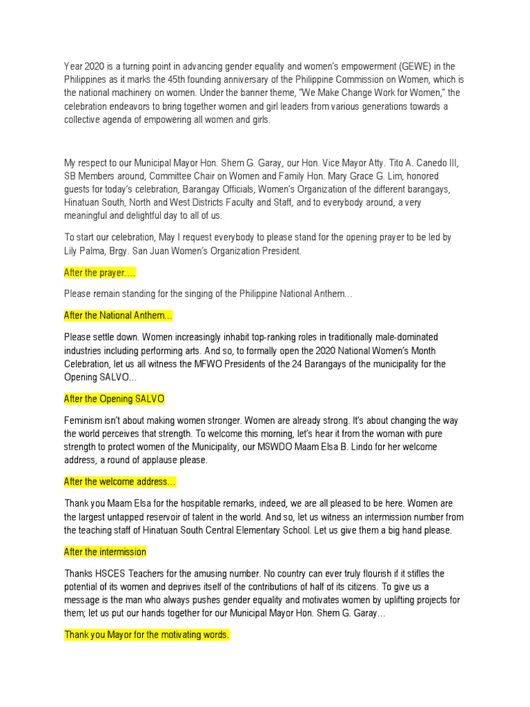 Women's Day Script | PDF