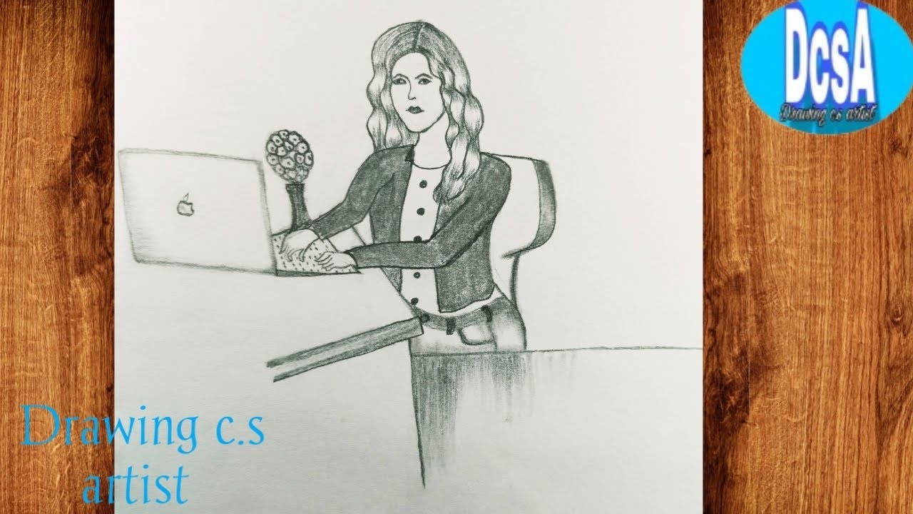 how to draw a girl working on a laptop|pencil sketch for beginners|girl ...