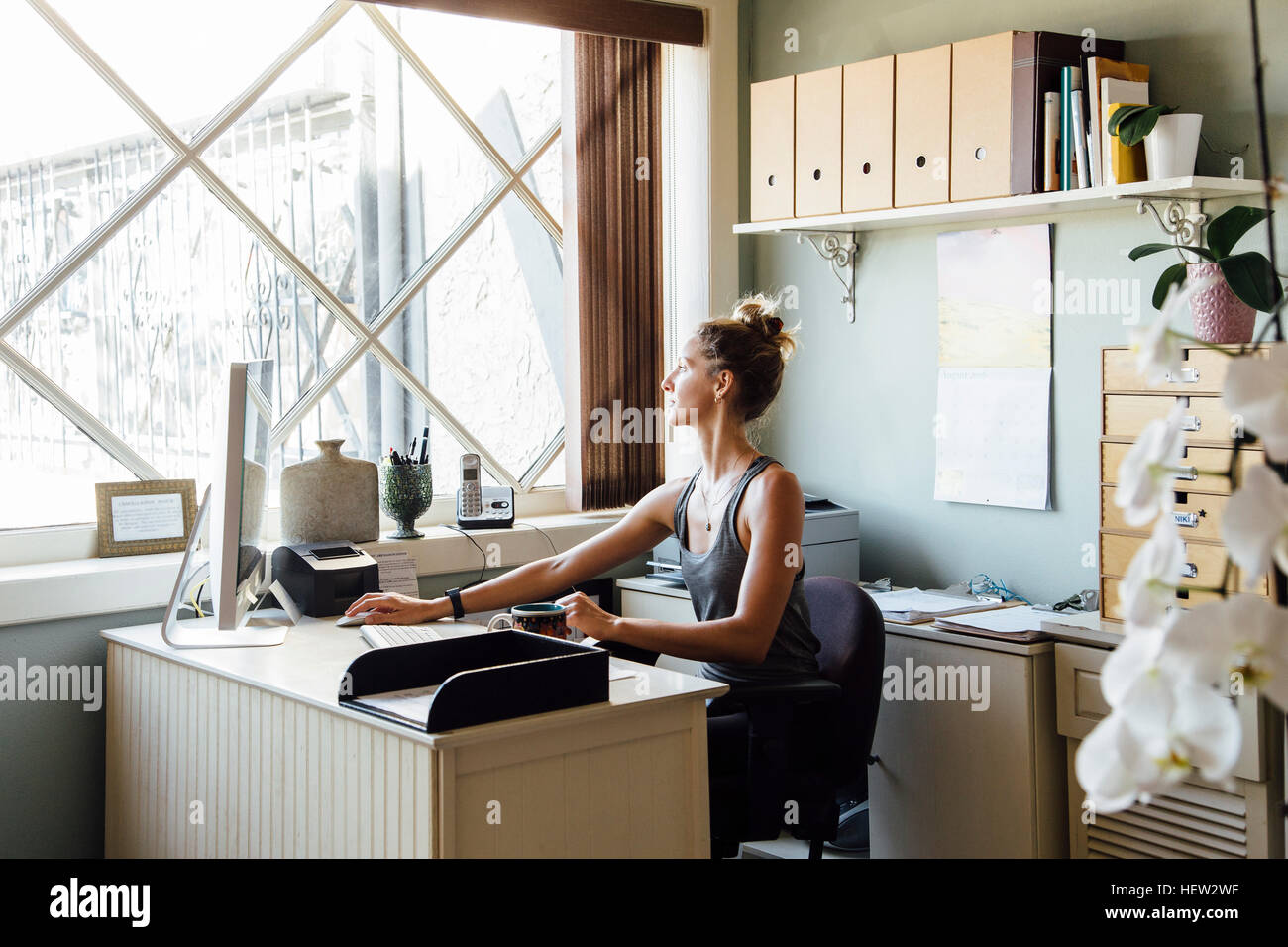 Young woman in office using computer Stock Photo - Alamy