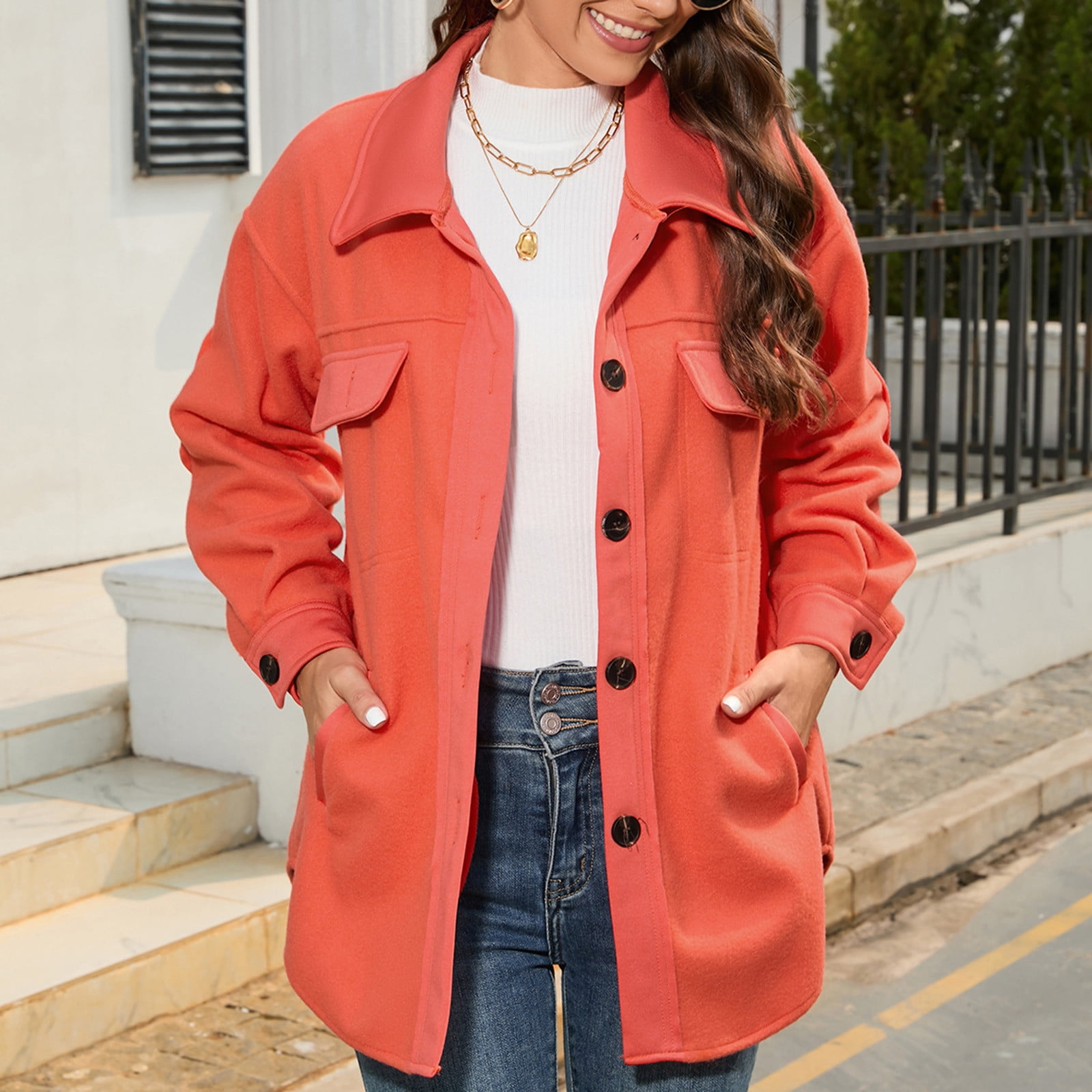 WCMZJ Women Wool Shacket Jacket Oversized Long Sleeve Lapel Pea Coat ...