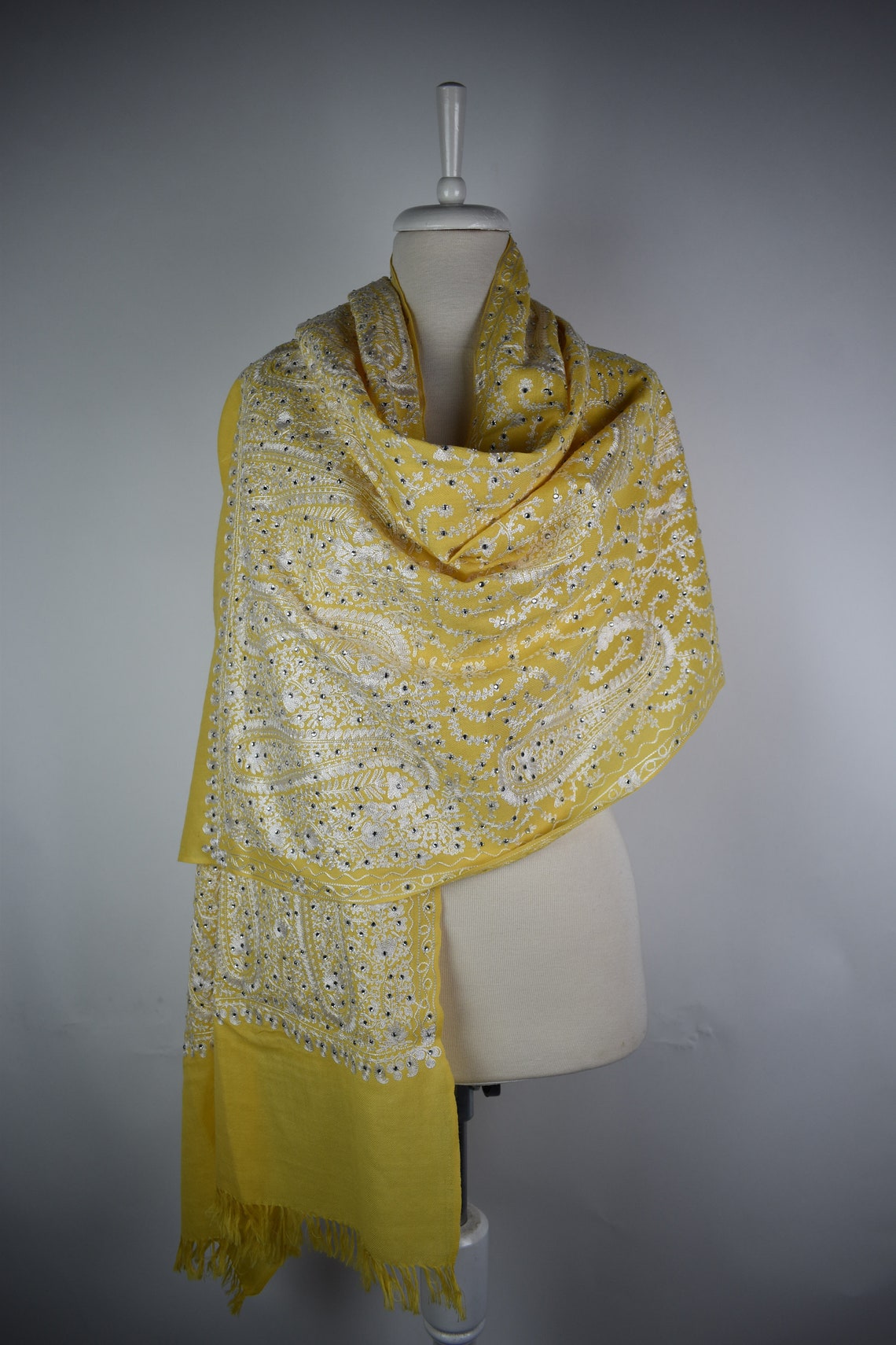Elegant Embroidered Wool Wrap Shawl - Etsy