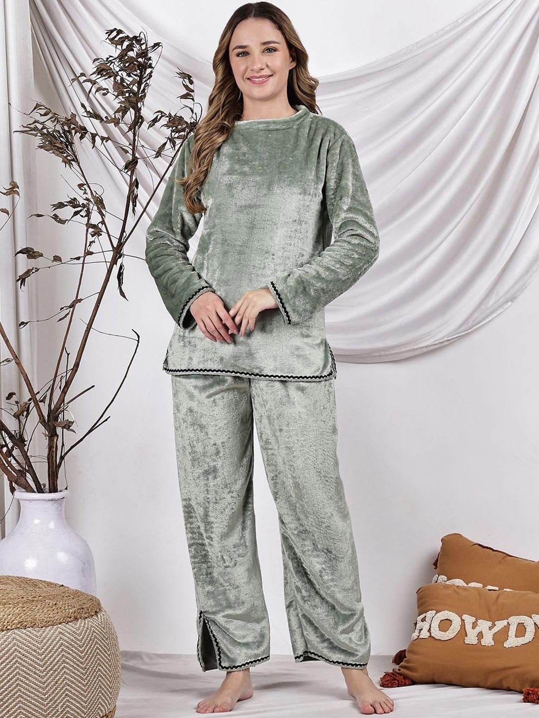 Buy NEUDIS Women Lace Trim Detail Round Neck Top With Pyjamas Woolen ...