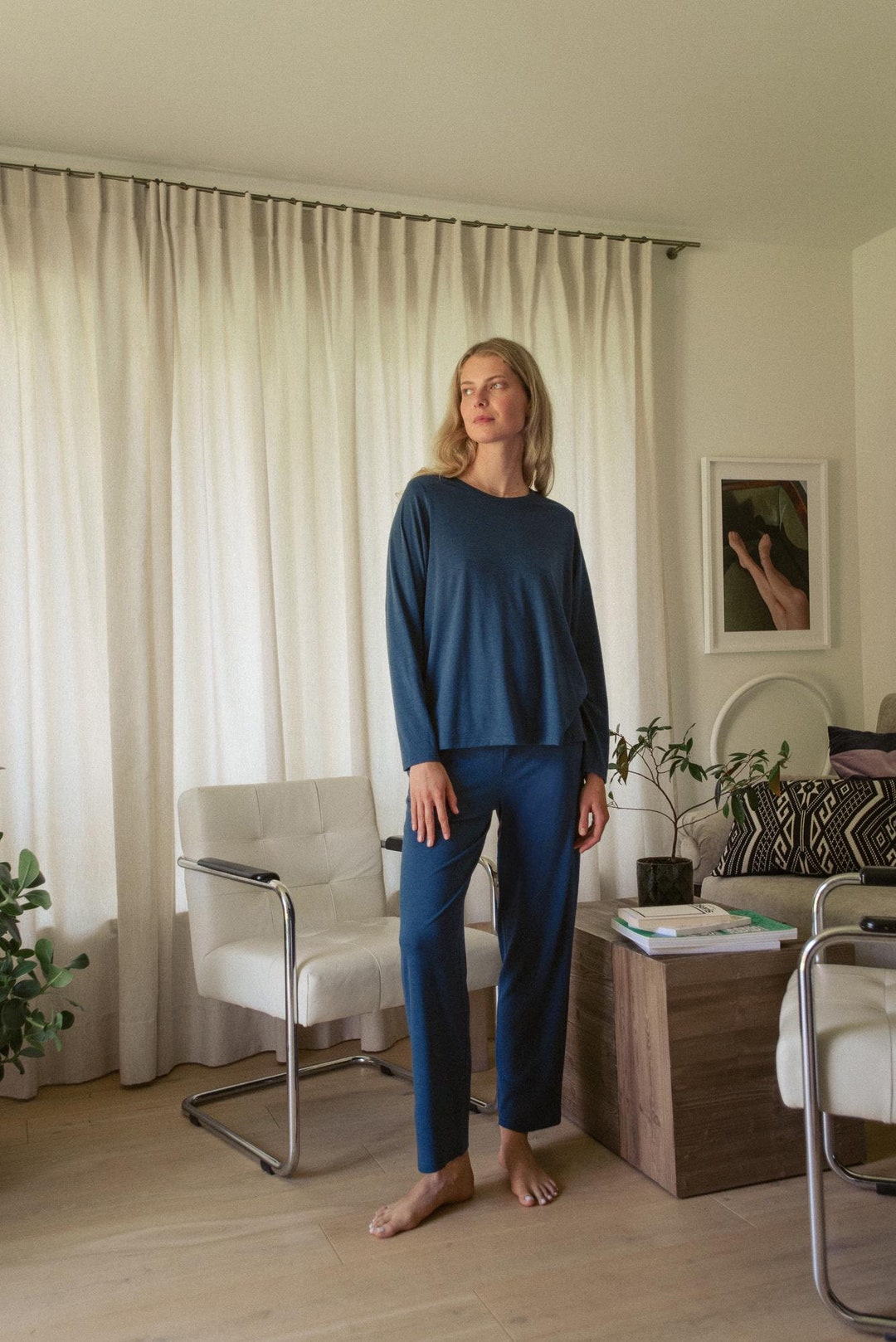 Wool Pajamas for Women, Merino Wool Winter Pj's, Long Sleeves Blue ...