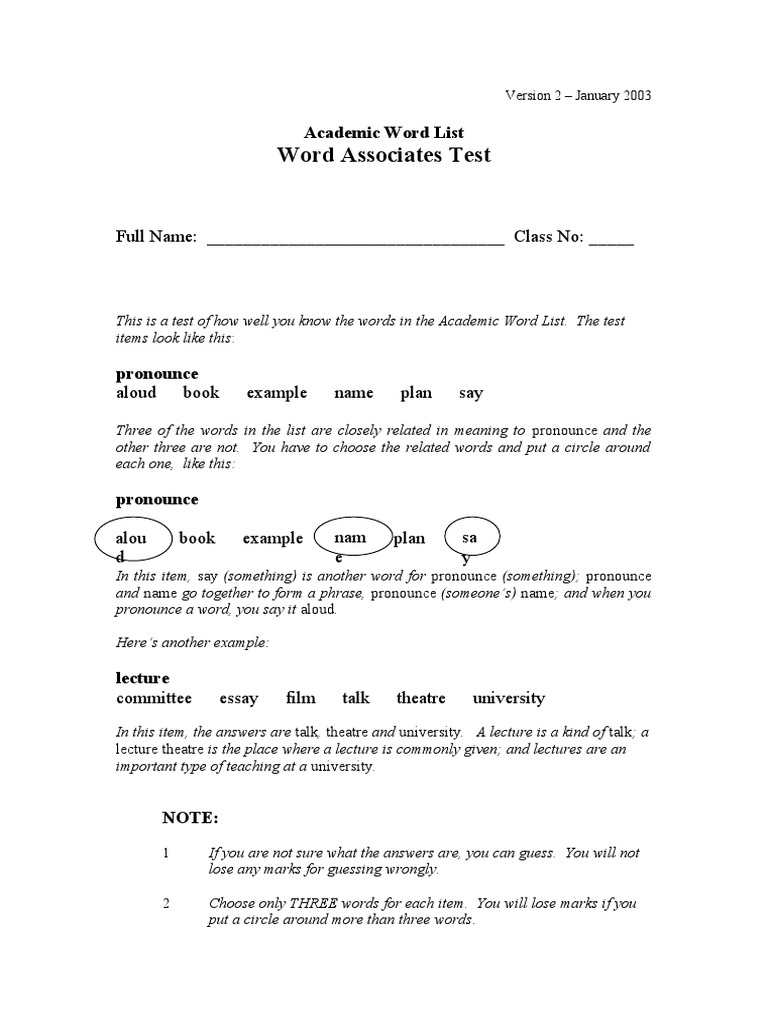 Word Associates Test | PDF | Information | Communication