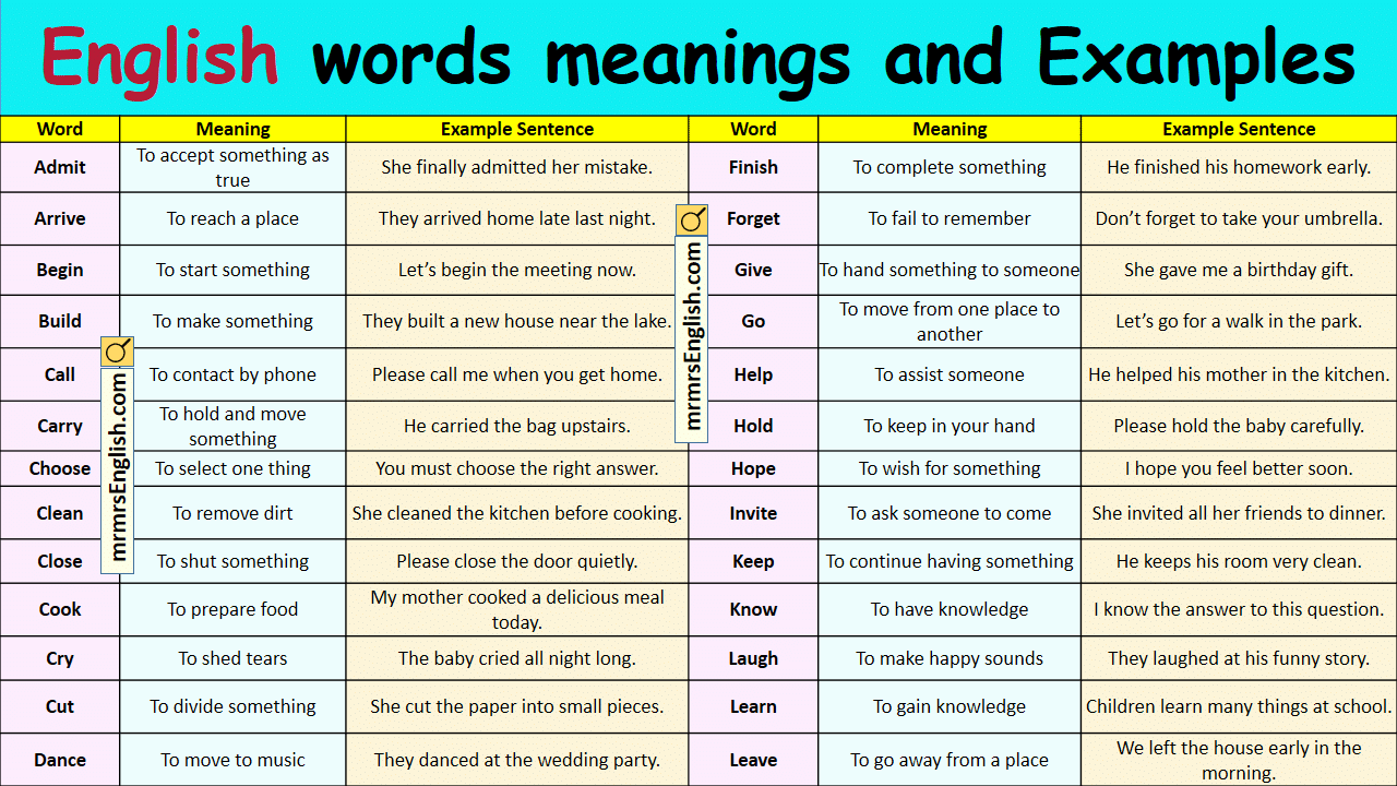 Daily Used Basic English Words with Example Sentences - MR MRS ENGLISH