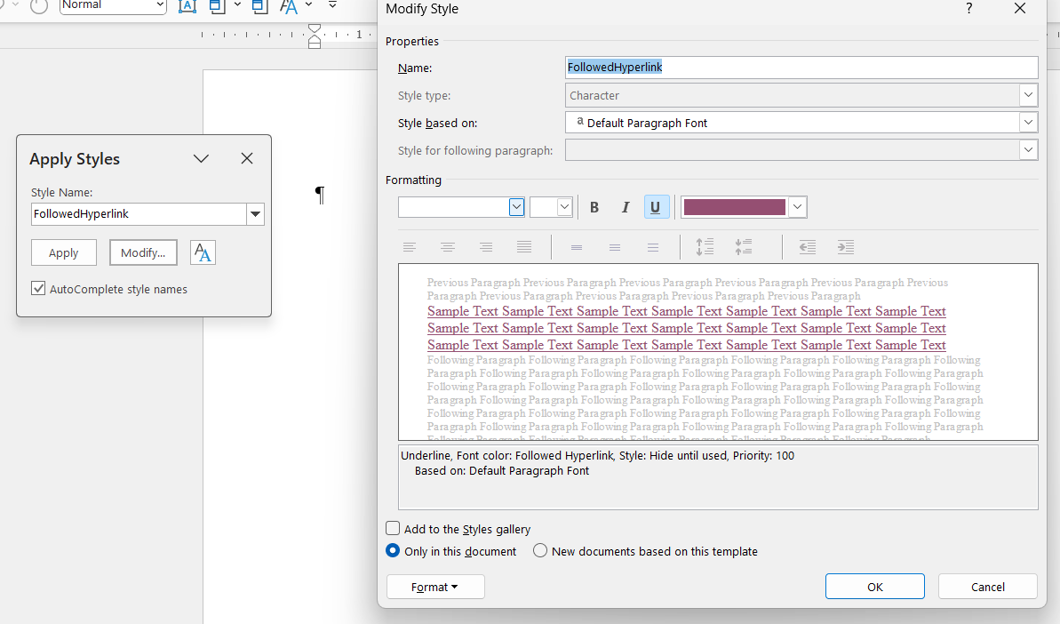 How to Change The Color of Clicked Hyperlinks in Word - YouTube