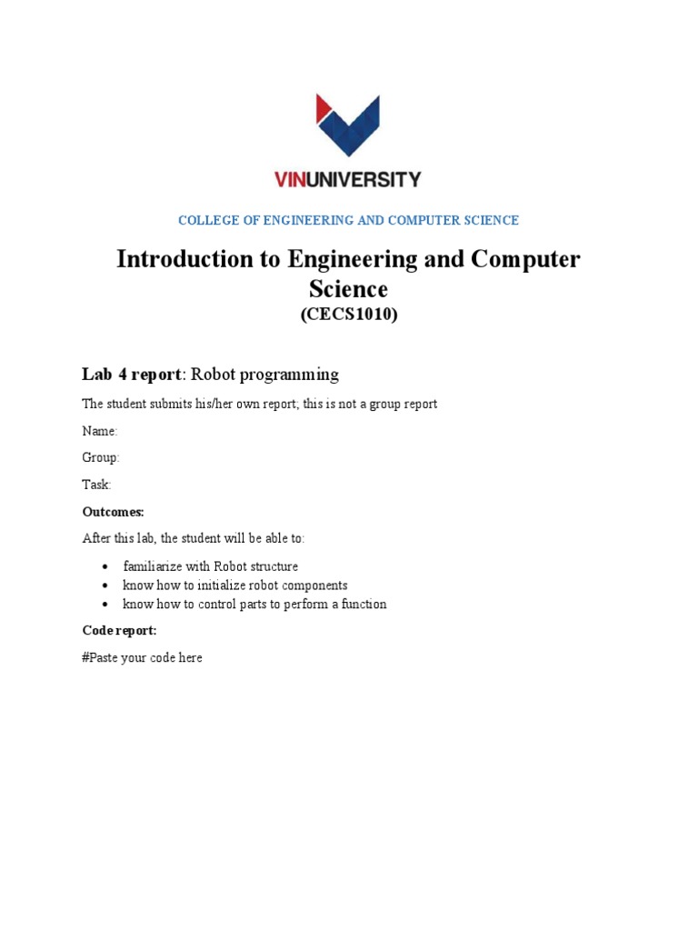 Robot Programming Lab Report CECS1010 | PDF