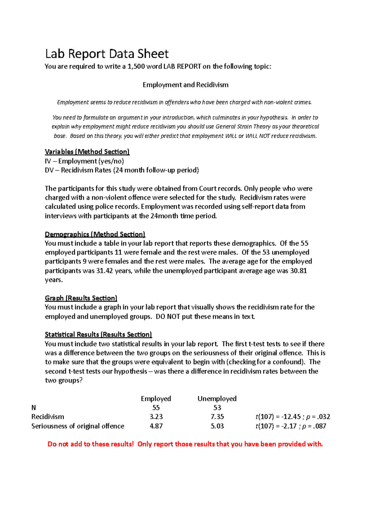 Lab report Data Sheet - Lab Report Data Sheet You are required to write ...