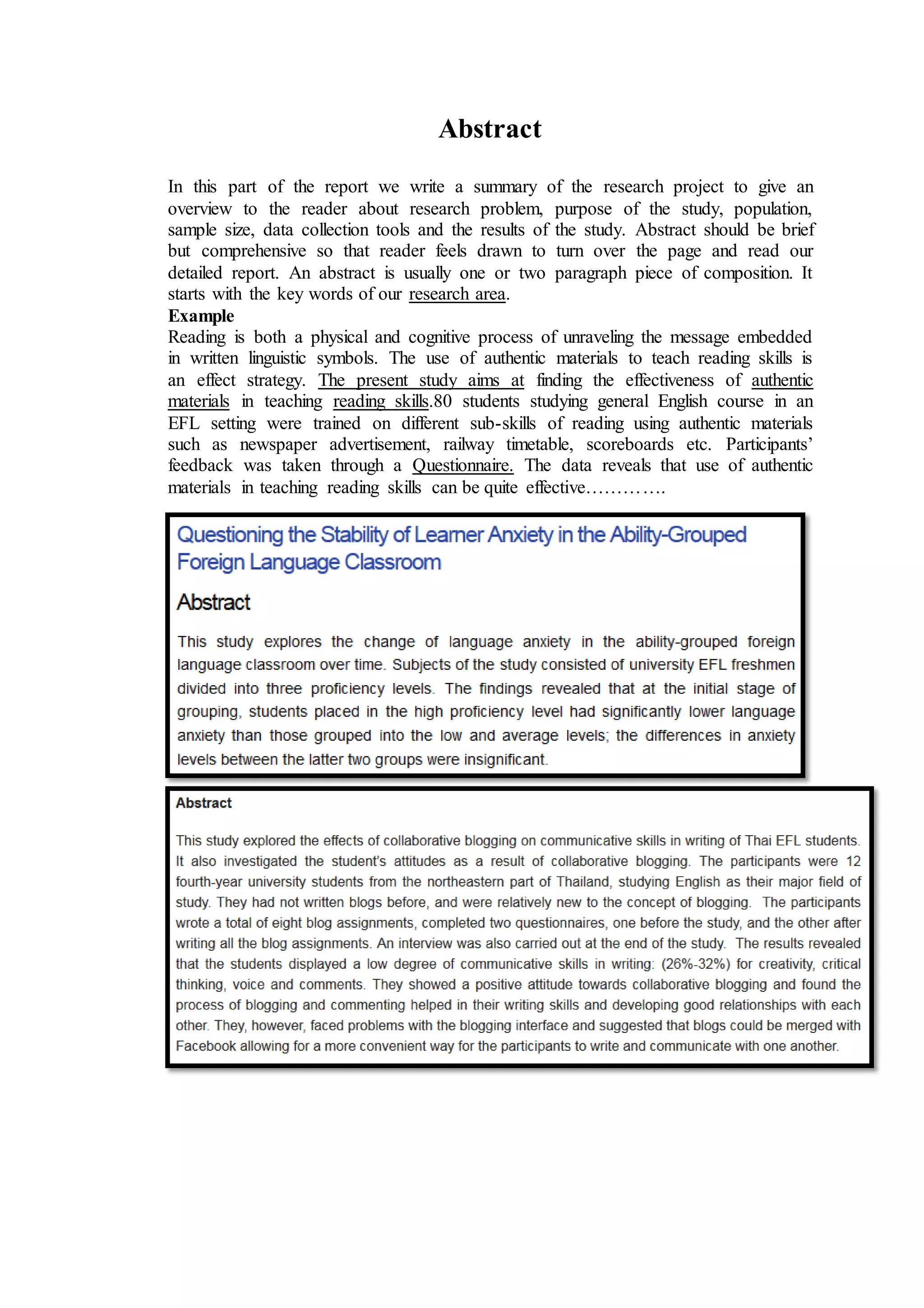 abstract example for report pdf