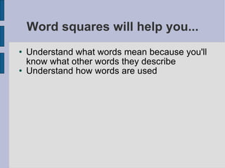 Vocabulary Word Squares by Curtis Custom Curriculum | TPT