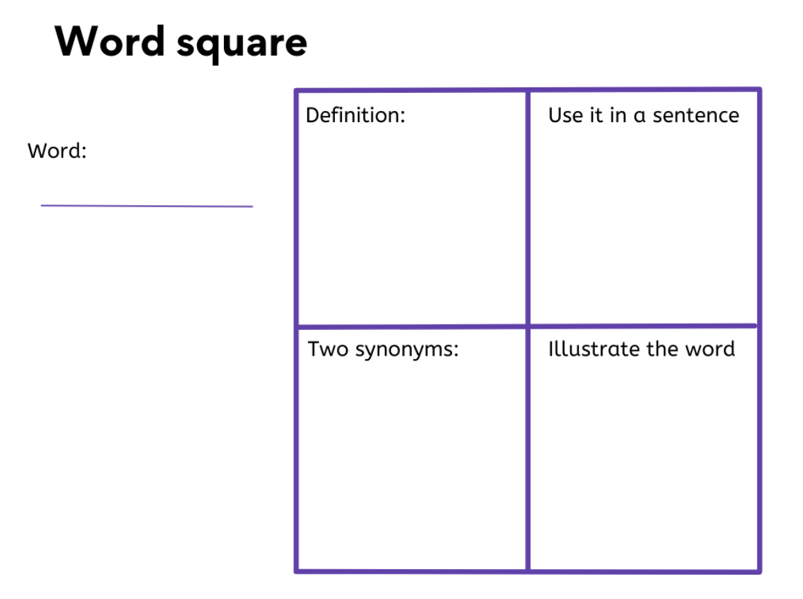 Vocabulary 4 Square by Miss Clark's Classroom | TPT