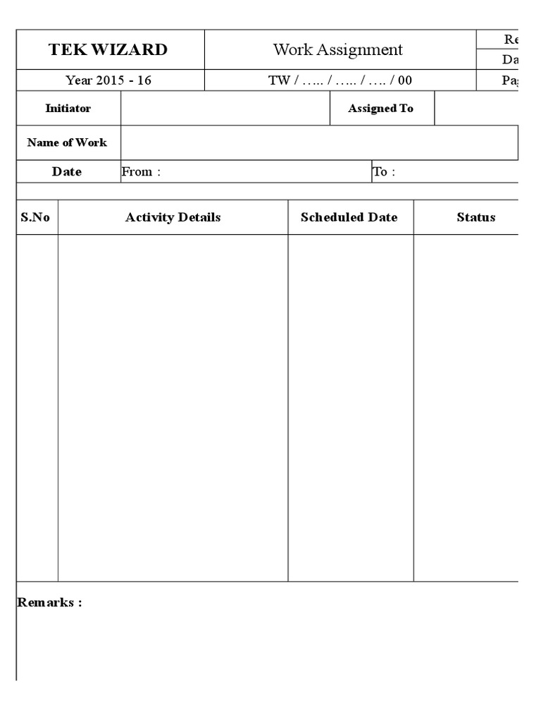 Work Assignment Template in Word, PDF, Google Docs - Download ...