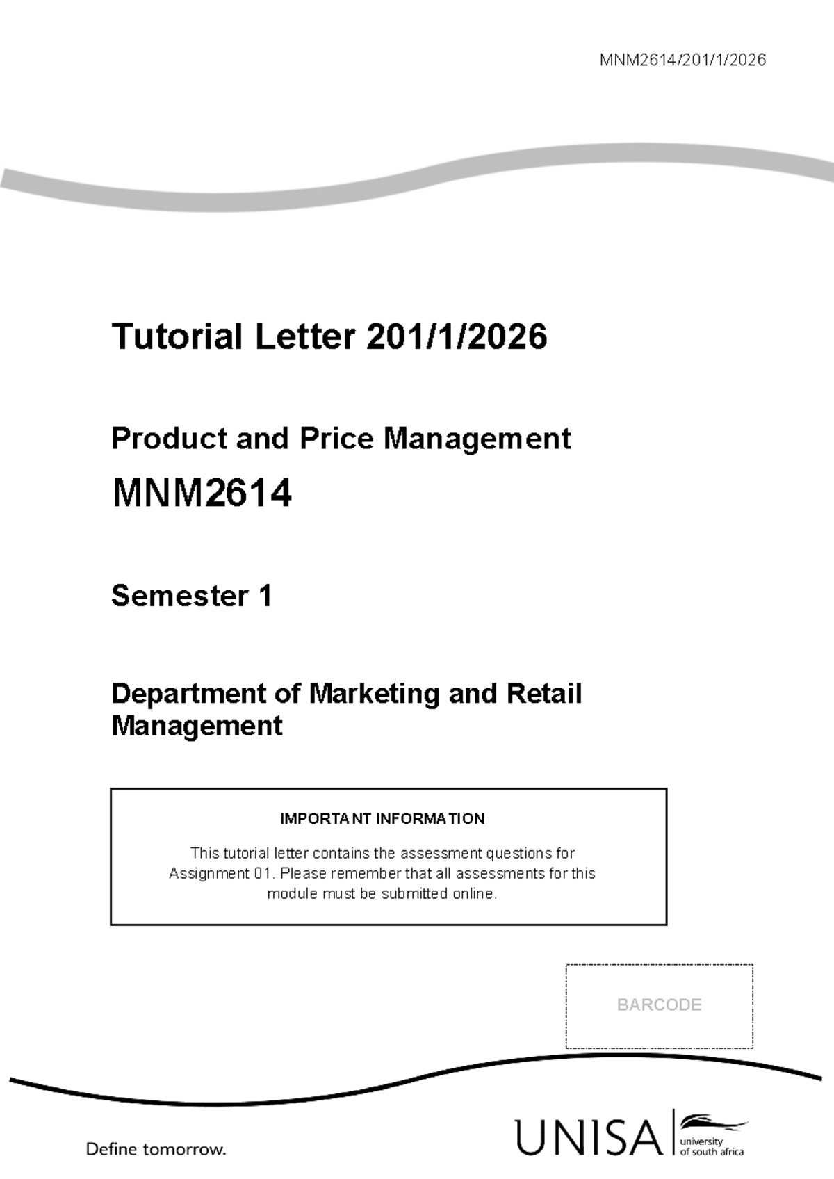 MNM2614 Tutorial Letter 201/1/2026: Assignment 01 - Studocu