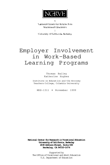 (PDF) Employer Involvement In Work-Based Learning Programs