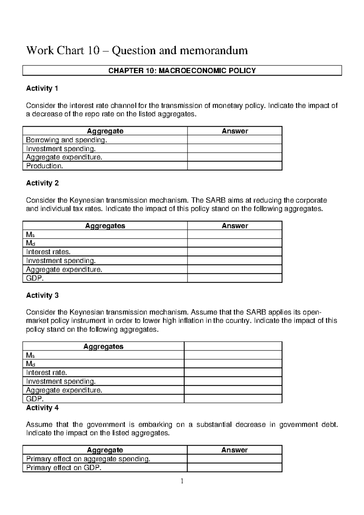 Work Chart 10 Question and Answer - Work Chart 10 – Question and ...