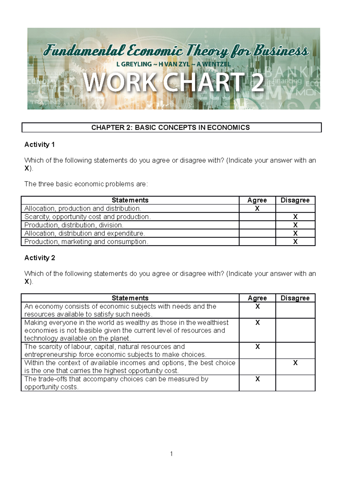Activity work chart 1 | PDF | Opportunity Cost | Economics