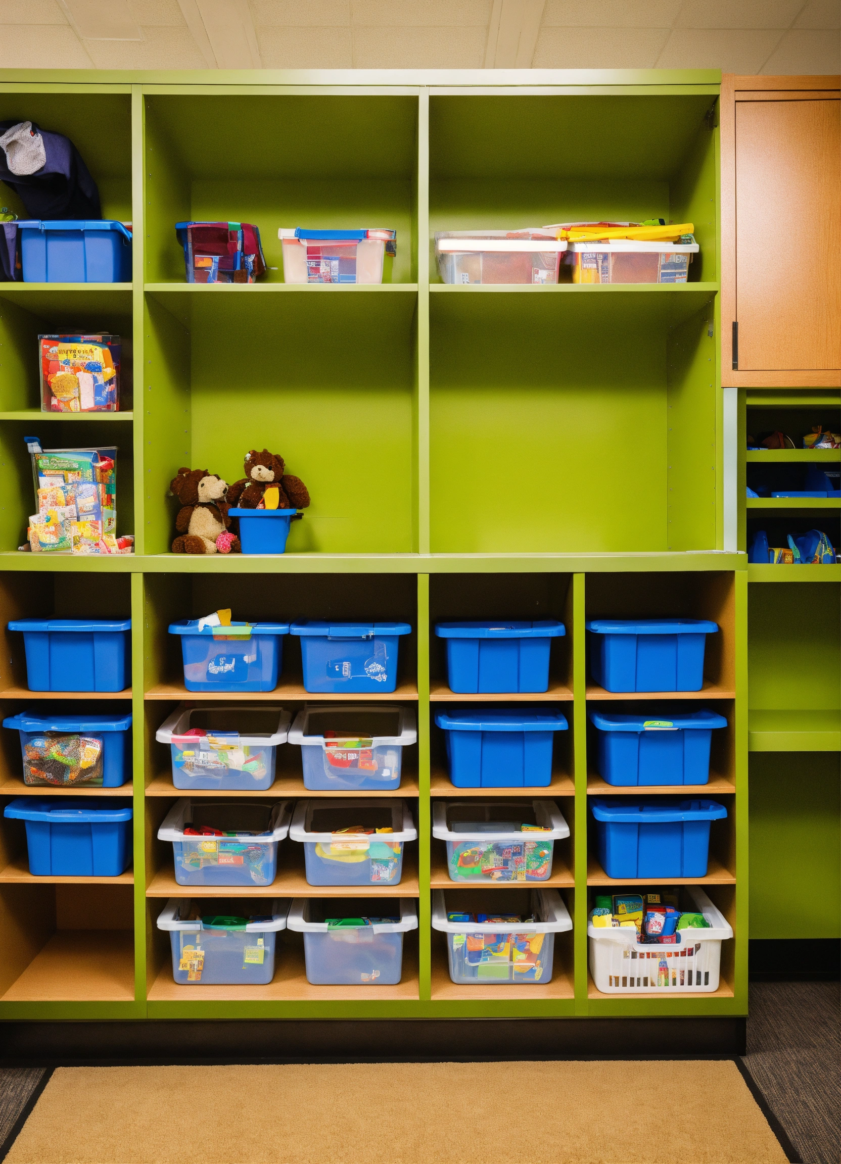 Closetmaid Cubbies and Lakeshore Bins for Classroom Organization