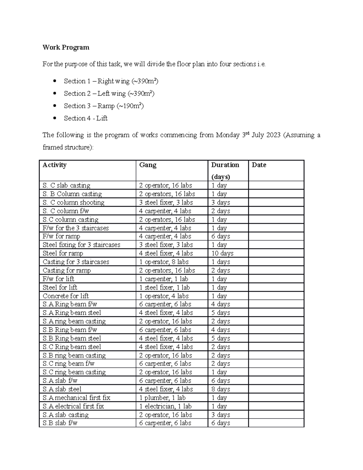 Work Program - It is an assignment on planning and managing ...