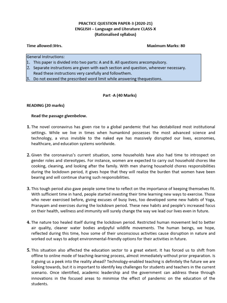 Gr. 10 Holiday Home Work Sample Paper 2 | PDF