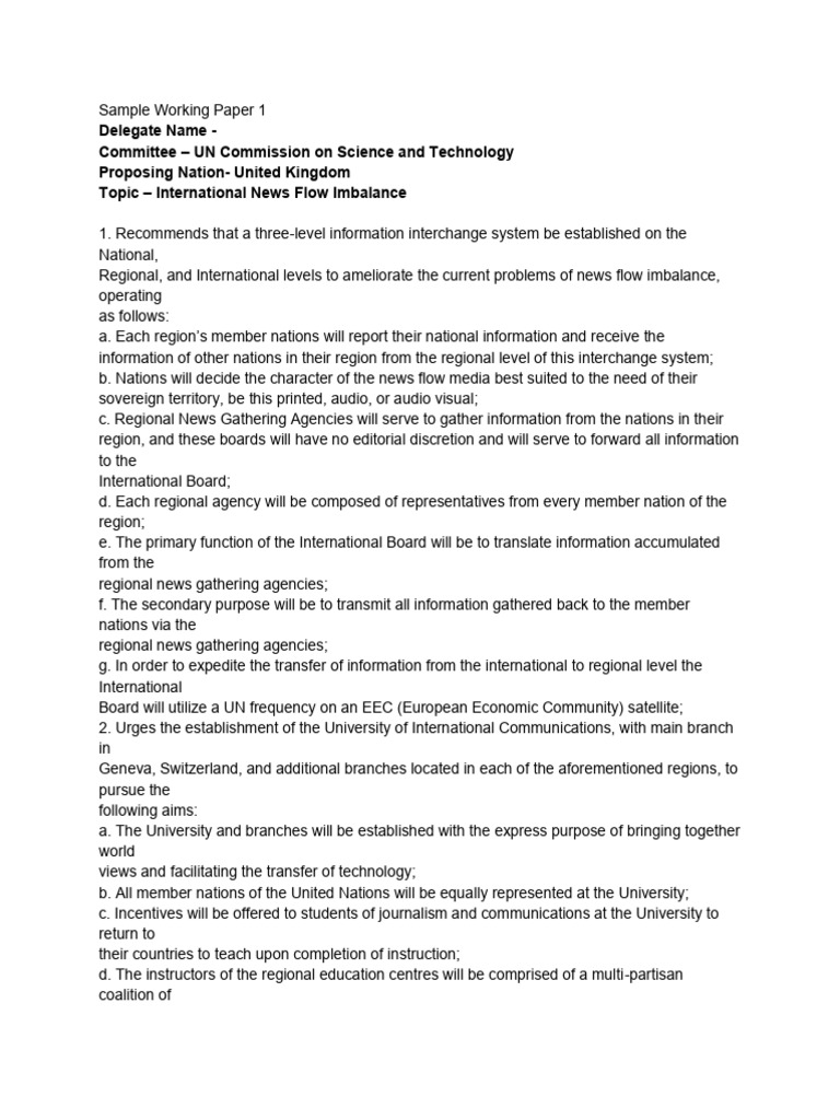 Example Working Paper For Mun | PDF