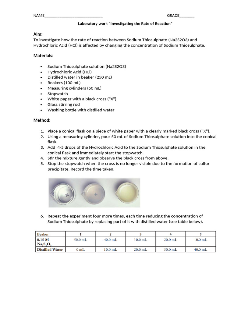 Lab Work Rate of Reaction | PDF | Chemical Reactions | Acid