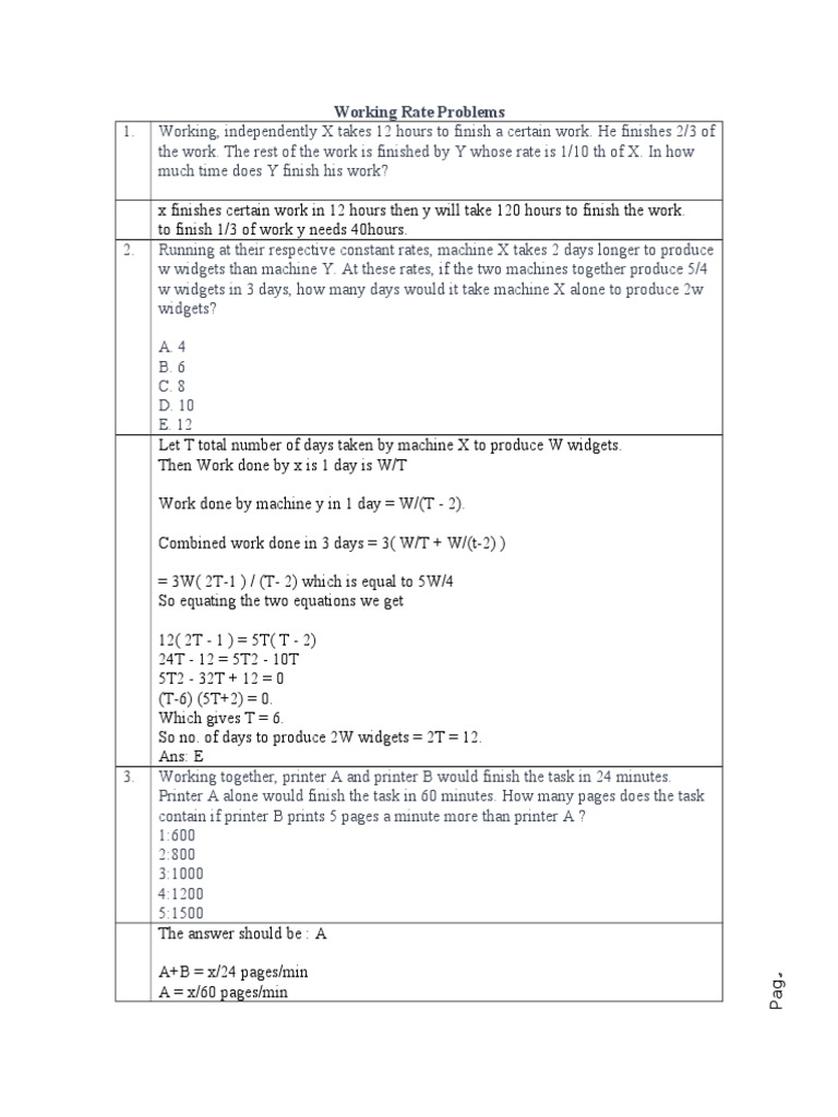 Work Rate Problems and Solutions | PDF | Printer (Computing) | Teaching ...