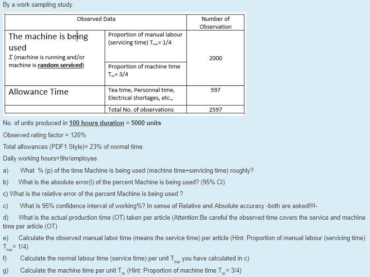 Solved Work Sampling: (2) (a) A work sampling study is to be | Chegg.com