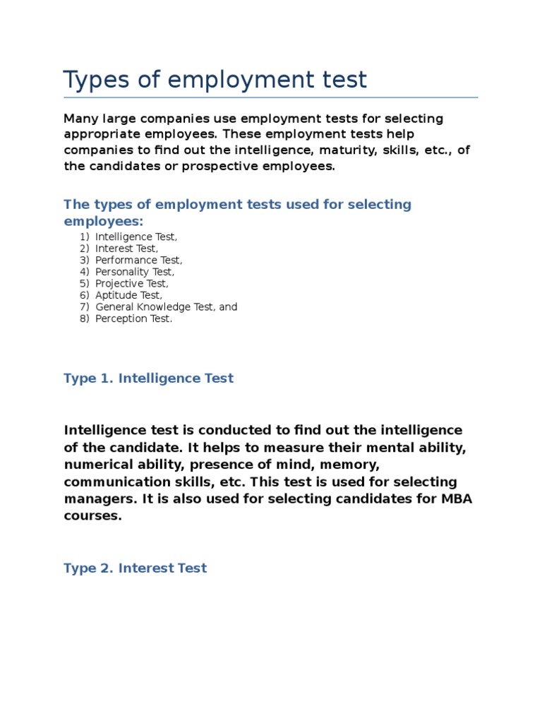 Types of Employment Test | PDF | Test (Assessment) | Employment