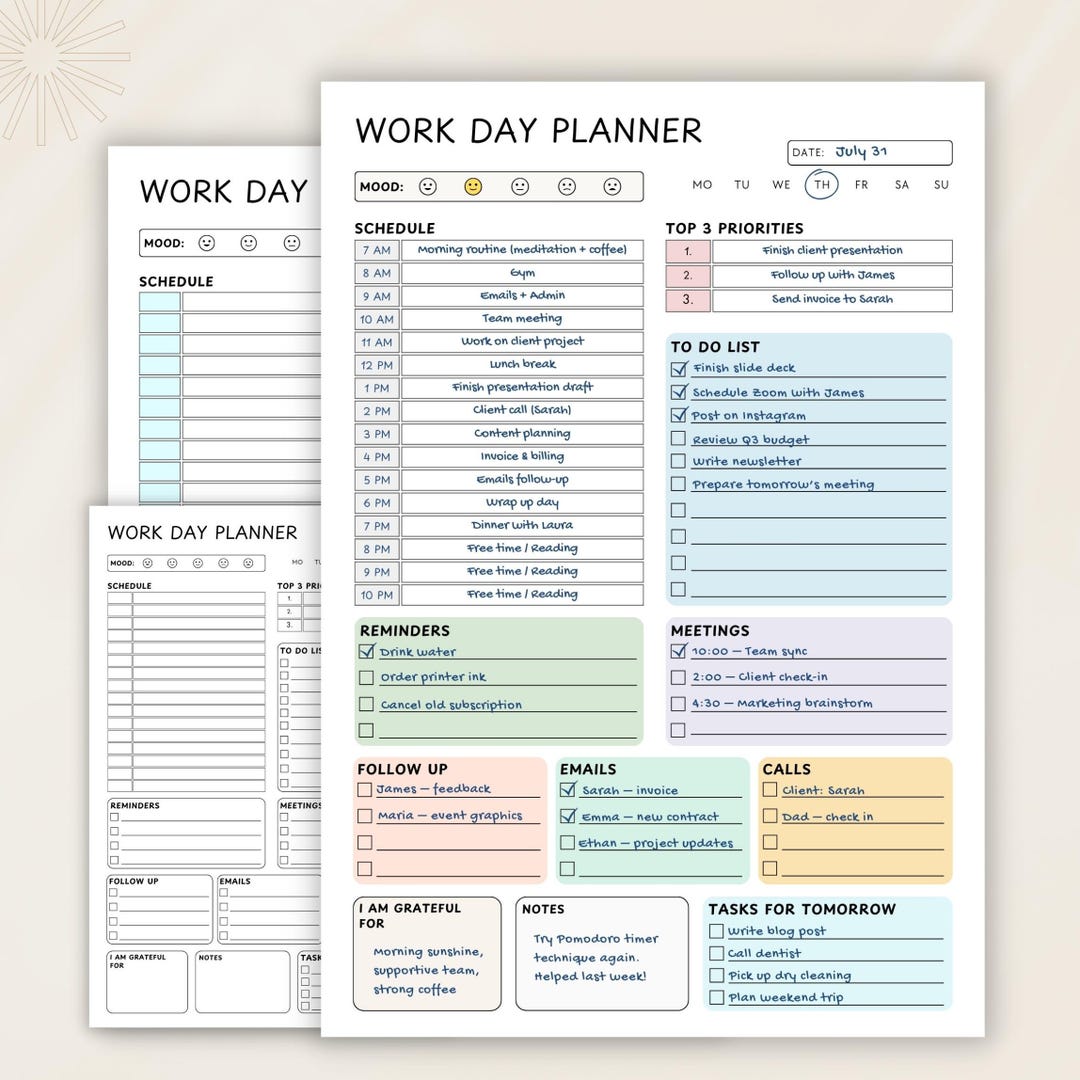 Workday Schedule Work Day Checklist Daily Organizer Work Organizer ...