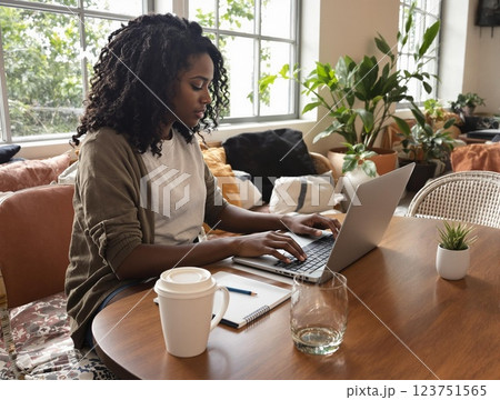 A woman is currently working intensely on her...のイラスト素材 [123751565] - PIXTA