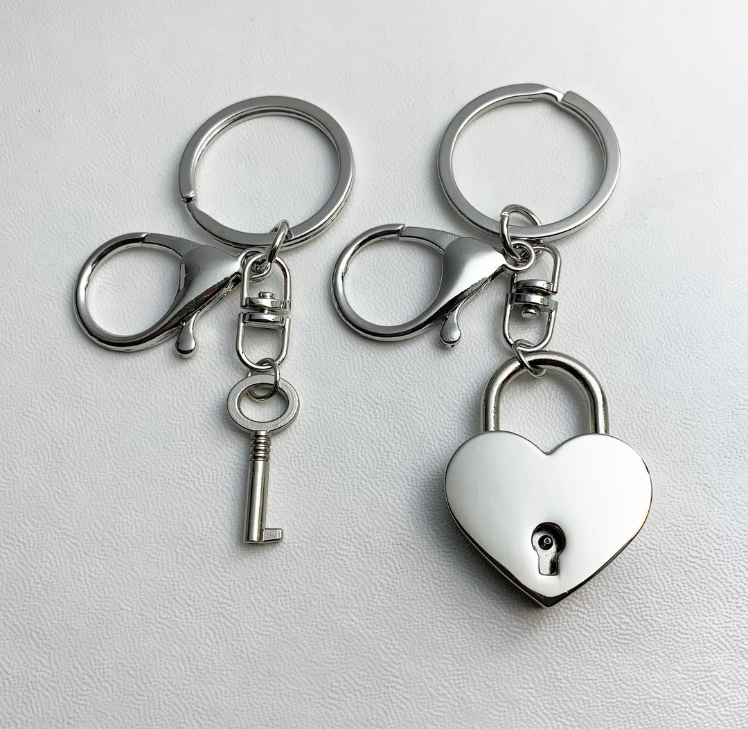 WORKING Heart Padlock and Key on Large Clasp Keychains. Best Friends ...