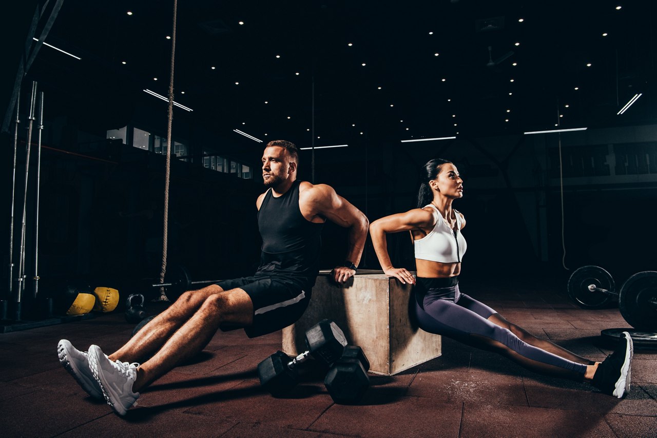 Royalty-Free photo: Fitness couple doing working out exercises in the ...